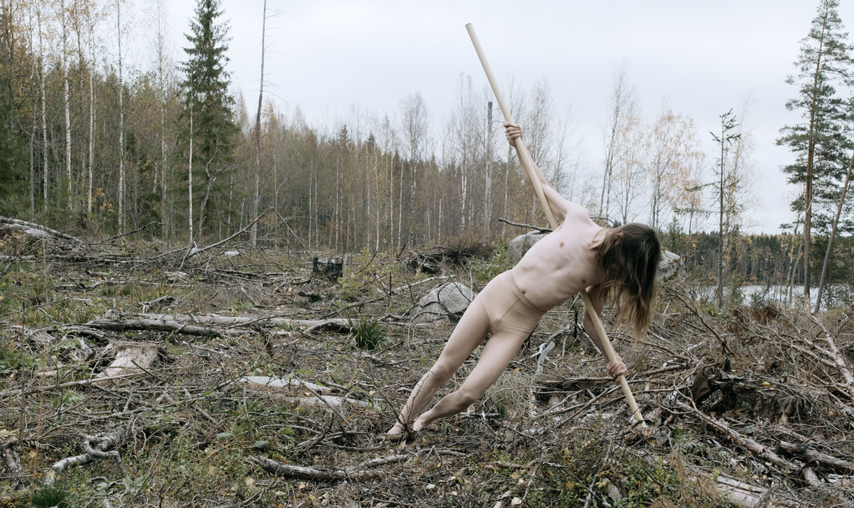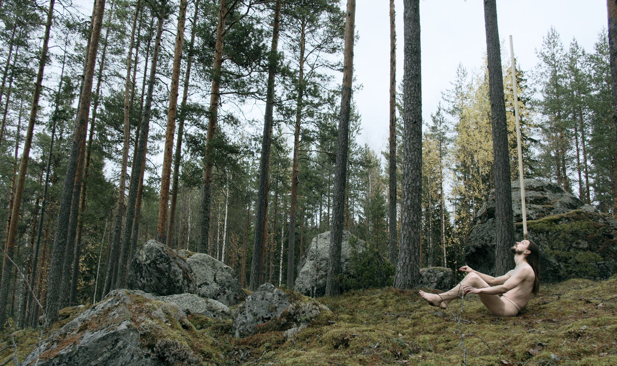 The film was the first time I explored my research with a male body. Throughout the process, we explored how femininity and vulnerability could be embodied in juxtaposition with the traditional male figures in Finnish national imagery. This inquiry unfolded in parallel with the question of man’s relationship to nature. Finland celebrates its forests as a national treasure, yet continues to cut them down and ignore the realities of climate change. By situating the male body within a disappearing landscape, the film reflects on the duality of masculine agency: the capacity for destruction, but also for care, mourning and vulnerability.
